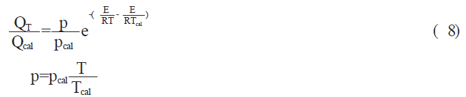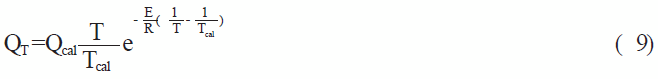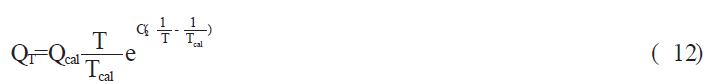 如果能夠確定常數, 那么式( 9) 就是溫度為T、QT 與Tcal 時的漏率Qcal 之間的指數修正公式。