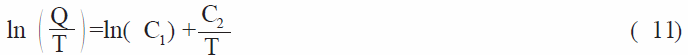 對等式( 10) 兩邊同除T, 并取自然對數, 可得