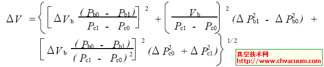 式中 ΔV 為被檢件容積的誤差; ΔV b 為標準有效容積誤差; ΔPb0 為標準容積壓力初值測試誤差;ΔPb1為標準容積壓力終值測試誤差; ΔPc0 為被檢件壓力初值測試誤差; ΔPc1 為被檢件壓力終值測試誤差。