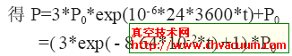 糧食真空干燥行業要求容器總漏率η的數量級為10Pa·m3/s,假設真空倉工作于8000Pa 狀態, 代入⑤式δ的數量級為10- 4Pa·m3/s; 對于100m3 的容積, 取κ=10- 6/100*103=10-6,若檢漏時充入3 個大氣壓力, 則壓力隨時間變化的公式如下: