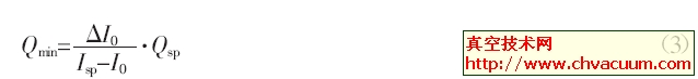 (1)將材料、體積和產品相同的等效電池裝入檢測室,在相同檢測條件下,利用質譜計分別測量標準漏孔施氫前的本底氫離子流強度和施氫后的氫信號離子流強度,計算氫信號增量ΔIsp=Isp-I0,用式(3)計算系統的有效最小可檢漏率Qmin
