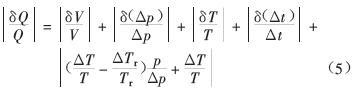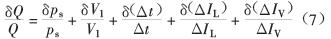 根據不確定度的分析方法,如果ps,V1,△t,△IL和△Iv測量不確定度分別為δps,δV1,δ(△t),δ(△IL)和δ(△Iv),正壓漏孔漏率的測量不確定度δQ/Q為: