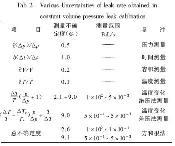 在測量過程中,由于溫度變化而引起了壓力變化,是漏率測量不確定度的主要來源。通過理論計算和分析,定容法校準正壓漏孔的不確定度為:
