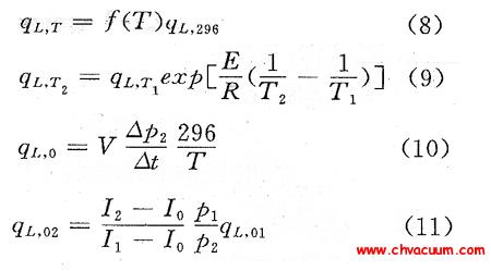 經預抽并烘烤容積V后,標準漏孔進氣端壓力p1<1.33×103Pa,而V達到極限真空。當壓力為1.01×105Pa的校準氣體(例如N2氣)經標準漏孔流進容積V,并在V中壓力p2穩定后,關閉閥門S2記錄時間和環境溫度T,測出對應Δt時間的升壓Δp2則標準漏孔的漏率為式(10)。