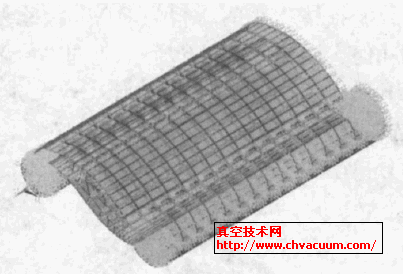 前處理:通過SOL IDWORKS 2006SPO創(chuàng)建隔離葉片的幾何實(shí)體,將模型存為IGES文件格式,把該模型通過ANSYS內(nèi)置的IGES轉(zhuǎn)換過濾器輸入到ANSYS中。隔離葉片的幾何實(shí)體如圖3所示。隔離葉片的材料為Cr12,揚(yáng)氏模量E = 2. 06×1011 Pa及泊松比NUXY = 0.3 。從ANSYS單元庫(kù)中選2 - D的PLANE42單元和3 - D的SOL2ID45單元 。接著進(jìn)行網(wǎng)格劃分:先指示ANSYS程序?qū)Ω綦x葉片的末端截面自動(dòng)劃分單元網(wǎng)格,再對(duì)可能產(chǎn)生應(yīng)力集中的部位進(jìn)行細(xì)化,劃分單元類型選擇為PLANE42;再利用ANSYS程序的體掃掠( Extrude)功能掃掠貫穿整個(gè)隔離葉片使其生成單元,單元類型為SOL ID45,為四邊形網(wǎng)格、六面體單元。劃分結(jié)果為: 節(jié)點(diǎn)數(shù)10832個(gè),單元數(shù)9776個(gè),隔離葉片的網(wǎng)格劃分模型如圖2所示。