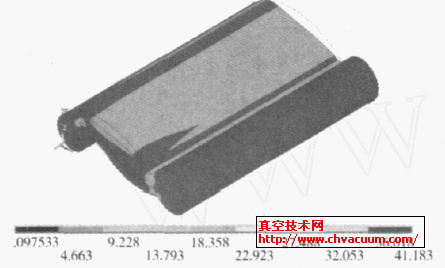 圖4 隔離葉片的位移變形圖5 隔離葉片的等效應(yīng)力分布