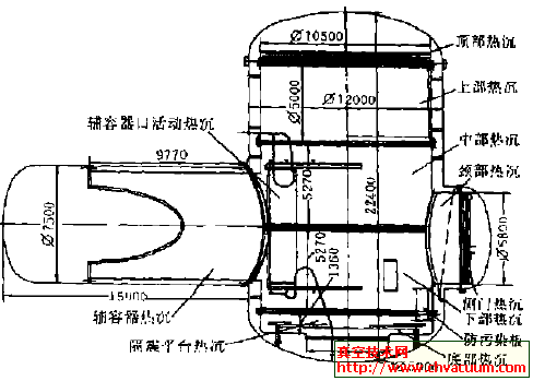 圖2 大型空間環境試驗設備內裝式低溫真空系統和熱沉布置示意圖