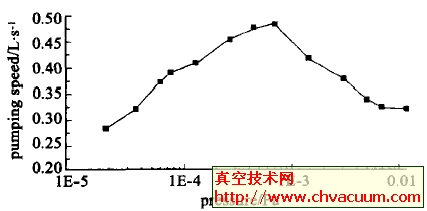圖3是微型濺射離子泵測試結果:離子泵對N2抽速≥013L/s。根據二極型濺射離子泵對不同氣體抽速的經驗比值可知,濺射離子泵對N2抽速為對干燥空氣抽速的85%。
