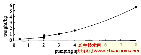 圖4 Varian 公司微型濺射離子泵抽速與重量的關系