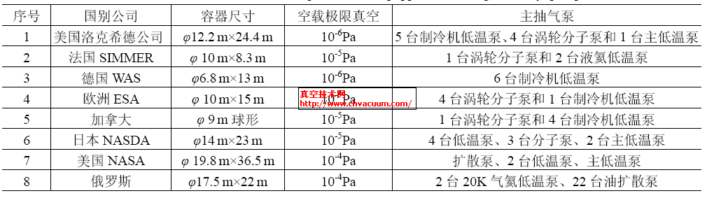 3、制冷機低溫泵在世界各國空間環境模擬器上的應用