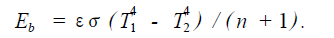 式中:σ = 5.67 ×10- 12 W·cm- 2 ·K- 4 ,ε為發(fā)射率,n為防輻射噴鋁滌綸薄膜層數(shù).