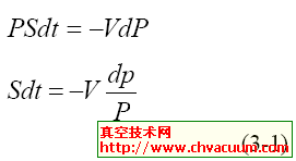 在真空系統(tǒng)中,對一定容積的被抽容器,隨著氣體逐漸被抽出,容器內(nèi)壓強(qiáng)包括抽氣機(jī)進(jìn)口處的壓強(qiáng)不斷降低,因而每次抽出的氣體在不斷減少,抽速就不斷變化。這樣,抽氣機(jī)的抽速應(yīng)是在某一瞬時壓強(qiáng)下被抽氣體體積對時間的導(dǎo)數(shù)。即: