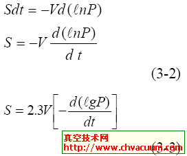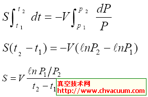 代入(3-3)式,即可求出該壓強(qiáng)下的抽氣速率。如只需粗略估計抽速,可求其平均抽速。即認(rèn)為在一小段時間t1- t2間隔內(nèi)抽速近似不變,由(3-1)式得