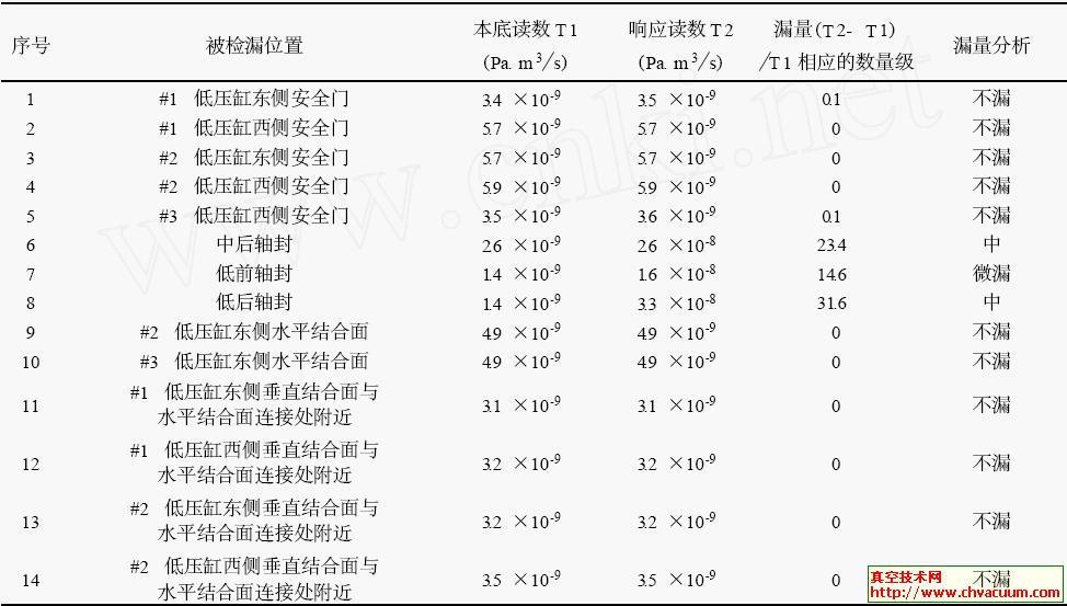 (4) 對于凝汽器喉部以下的真空系統,采用灌水查漏的方法消除漏點.