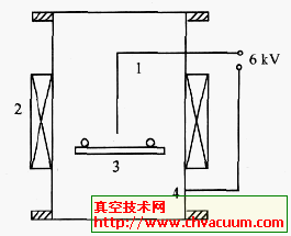 圖22示出一種帶水冷擋板的離子阱原理圖。阱由陽極、陰極、水冷板及磁鋼組成。陽極接3kV正高壓,陰極是阱殼體(接地)磁鋼裝在殼體外面,水冷板處于殼體內(nèi)部,對(duì)著機(jī)械泵的抽氣口。