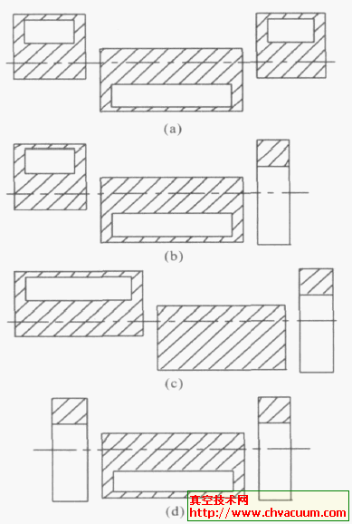 導軌結構有幾種型式,一種是分體式的(圖2a),如醫藥行業過去普遍使用的1401泵、412H等滑閥泵都用這種導軌。分體式導軌結構簡單、加工方便,但它的間隙分配不均,間隙必須取得較大,所以泵的真空度偏低。安裝分體式導軌的泵噪聲相對偏大。