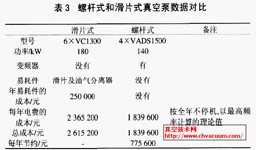 可以看出,滑片式真空泵相比與螺桿式真空泵的缺點:一是其運行一段時間后容易造成滑片磨損,效率為之下降,因此需要定期進行更換;二是其功率要大于螺桿式,運行成本較高;三是不能實現變頻調節。