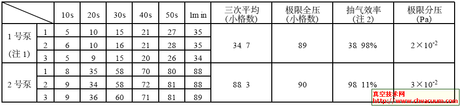 注: 11“1 號泵”、“2 號泵”分別為配用時抽速慢、快的2X270旋片式真空泵;
