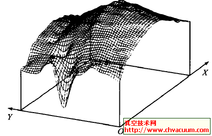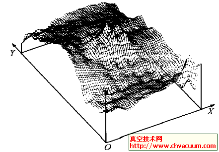 為查清泵體外殼噪聲輻射的分布情況,在距離端蓋Ⅰ外側面6cm處取一長36cm,高24cm 的測量面,將測量面劃分成12×8網格,測取各網格中點的法向聲強值,可計算出端蓋工側表面輻射的聲功率譜,見圖5。同時通過插值擬合計算并繪出該表面聲輻射的三維聲強譜圖,見圖6。