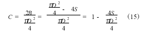 現(xiàn)定義C為面積利用系數(shù),表示一個(gè)轉(zhuǎn)子外表面與氣缸內(nèi)表面之間所包容的面積與一個(gè)氣缸內(nèi)圓面積之比, 表征氣缸空間的利用程度