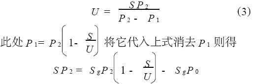 式中P1為吸氣終了時泵腔內的壓力; Sg為泵腔的幾何抽速, S為實際抽速, P2為泵入口處的壓力,Q是反向氣流量(在低壓時Q 為常量)。當泵達到極限壓力P0時, 這時P2=P1=P0,SP2=0, 故Q=SgP0。再將Q 代入(1)式得