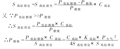 高缸在極限壓力附近的返流為分子流狀態,則此時高缸的間隙流導與壓力無關,只與高缸間隙大小相關,所以可設此時高缸的間隙流導為C 高缸。高缸沒有排氣閥,高缸的排氣壓力始終與低缸的進氣壓力相同,所以可得: