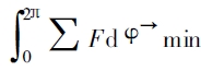 由方程(1) 可知, 只要計算平衡配重與泵兩缸產(chǎn)生的不平衡慣性力在所有位置上的合力, 即就可以使作用于整個雙級泵的振動減至最小。所以,對于平衡配重所產(chǎn)生的慣性力是整個振動平衡計算的關(guān)鍵, 為了尋求最佳的平衡效果, 提出多級平衡的新概念。配重所產(chǎn)生的慣性力是按照一階簡諧運動變化, 而長短缸在運動中所產(chǎn)生慣性力的大小和方向隨時都改變著, 需要在不同方向配置相應(yīng)的平衡配重, 即采用多級平衡配重,使泵的剩余慣性力漸次逼近最小值以獲得最優(yōu)的平衡效果。因此計算雙缸結(jié)構(gòu)的雙級泵的動平衡, 最主要的就是各級配重質(zhì)量、重心及其分布的確定。這里引入了最小二乘法, 將各級配重的慣性力的簡諧運動變化的目標(biāo)曲線來擬合所計算出的長短缸的慣性力曲線, 使作用于泵體上的不平衡慣性力趨于最小, 從而計算出各級配重最優(yōu)的質(zhì)量和質(zhì)心。