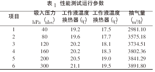 我單位根據(jù)需要選取了不同型號(hào)的水環(huán)式真空泵應(yīng)用于不同場(chǎng)合給粗品蒸餾設(shè)備提供真空,以型號(hào)為T(mén)C- 11 的GD Nash 水環(huán)式真空泵為例,其性能參數(shù)如表1 所示。(試驗(yàn)條件:轉(zhuǎn)速590/min,大氣壓力989hPa(abs.),空氣溫度17.5℃,空氣濕度35.6%)