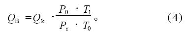 目前,我國水環真空泵性能曲線都是按照工況狀態的流量繪制的。水環真空泵性能曲線是在出口壓力P0 = 101 325 Pa、進氣溫度T0 = 273 + 20 K狀態下,不同直徑的葉輪在不同轉速時泵吸入口吸氣量與吸入口處絕對壓力間的關系曲線。所以,需要將按照公式(1)計算得到的標準狀態下的礦井瓦斯抽放量換算成工況狀態下流量,即: