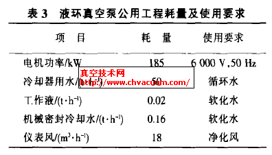 液環真空泵需要的公用工程介質主要是電和水。液環真空泵電機功率為185KW, 冷卻器冷卻用水50t/h, 其所消耗公用工程情況及使用要求見表3。