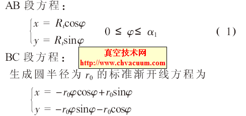 漸開線和擺線是轉子設計中常常選用的兩種基本型線,基圓半徑相等且延伸方向相反的一對漸開線( 擺線) ,是理想的共軛嚙合曲線。為了便于制造,常常將兩根螺桿的型線設計成參數相同,僅旋向相反。
