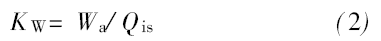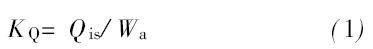 式中, KQ 為泵在一定入口壓力下的單位功率抽氣量, 單位為m3/ ( kW.h) ; Qis為該入口壓力時泵入口處的氣量, 單位為m3/ h; Wa 為該入口壓力時的軸功率, 單位為kW。