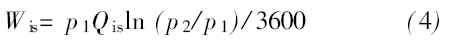 式中, Wis為該入口壓力時泵的等溫壓縮功率, 單位為kW, 其中, 等溫壓縮功率Wis的計算公式為