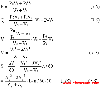 設(shè)泵的理論抽氣容積為 V ,則有 Q = PiV ,代入 (7 · 6) 式得