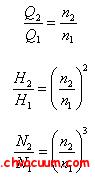 當液體粘度不大,泵的效率不變時,泵的流量、壓頭、軸功率與轉速可近似用比例定律計算,即