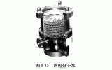 原理:每分鐘旋轉(zhuǎn)數(shù)萬(wàn)次的高速旋轉(zhuǎn)葉片撞擊氣體分子,被撞擊的氣體分子碰撞到固定葉片后又被彈到下一個(gè)旋轉(zhuǎn)葉片上,最終被送到排氣口。旋轉(zhuǎn)葉片和固定葉片的方向相反,使分子難于逆行。這種排氣方式,排氣速度不因氣體種類而變。