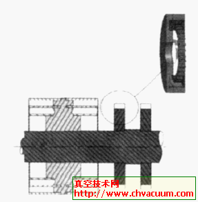 第一級由Holweck級組成,采用牽引分子泵的原理完成了高真空側的氣體傳輸和壓力提升。當氣體分子撞擊一個高速運轉的表面時,它會獲得一個與該表面運動方向相同的速度。轉子的運動使氣體分子加速,轉子與定子之間形成的有限的空間又限制了分子的運動,氣體分子在這兩種因素的作用下沿圓周方向被壓縮。為了防止氣體分子的返流,轉子與定子之間的尺寸應小于氣體分子的平均自由程。由于這一原因,Holweck級在分子流范圍內有一個最佳工作點。