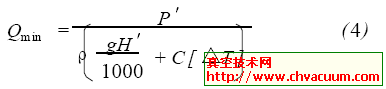 由以上分析可知,泵不發生汽蝕的最小理論流量Qmin為: