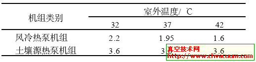 表1 土壤源熱泵機組與風冷熱泵機組能效比的比較