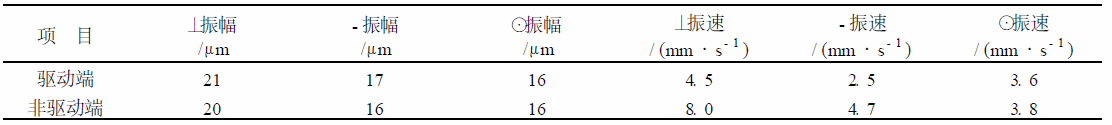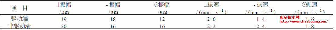2號機B真空泵投入前置噴射器前振動見表5,投入后真空泵振動見表6。