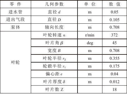 選取一種單級單作用、徑向吸排氣的液環真空泵作為研究對象,其主要設計參數數據參見表1。