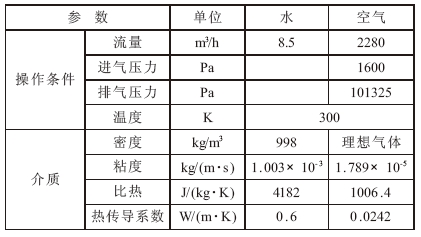 選取水和空氣作為液環真空泵的液相和氣相,假設液相為不可壓流體,氣相為理想氣體。介質物性及操作參數見表2。