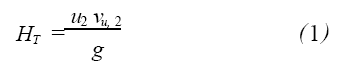 在水泵葉輪設計中,一般假設葉輪進口無預旋,即vu,1=0,則水泵的基本方程式為: