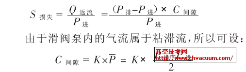 下面討論間隙對滑閥泵極限壓力的影響。對于單級滑閥泵,返流造成的抽速損失為: