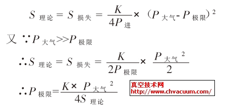 當滑閥泵達到極限壓力時,滑閥泵的實際抽速為零,即有: