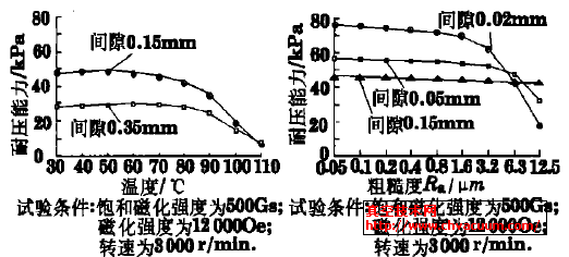 軸的轉速對磁流體密封能力的影響可見圖6。環境溫度對磁流體密封能力的影響可見圖5。軸和磁極的粗糙度對磁流體密封能力的影響可見圖6。