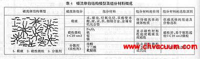 磁流體也稱為鐵磁流體或磁液。它是將摻入到載液中的鐵磁性微粒(<10nm)用分散劑均勻地分散,使成為某種具有流動性的懸浮狀的膠態液體。組分材料概況如表4所示。這種液體具有在通常離心力和磁場作用下即不沉降和凝集又能使其本身承受磁性可以被磁鐵所吸引的特性。