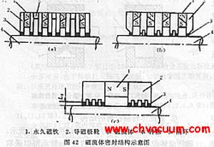 圖 42(a)所示的磁流體密封采用多個磁鐵,每個磁鐵與其對應的一對極靴構成各自獨立的磁回路,各回路間采用不導磁的隔墊隔開。