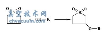 選取異辛醇、正癸醇和十二醇( 均為天津市光復精細化工研究所生產,分析純試劑) ,分別與環丁烯砜( 工業級) 進行反應制得產物3 - 異辛氧基環丁砜( A) 、3 - 正癸氧基環丁砜( B) 、3 - 十二氧基環丁砜( C) 。反應方程式如圖1 所示,反應溫度為室溫,堿性條件下反應,反應時間為4 ~ 6 h,反應結束后過濾、萃取、水洗、蒸餾最后得黃色透明液體產物。其中產物A 的密度為858 kg /m3,40 ℃運動黏度為25 mm2 /s。