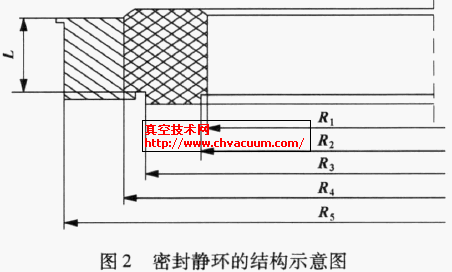 圖2中, R1為靜環的內徑, mm; R2為摩擦副端面的內徑, mm; R3為摩擦副端面的外徑, mm; R4為靜環與靜環座結合處半徑, mm; R5為靜環座的外徑, mm; L為靜環結合長度, mm。
